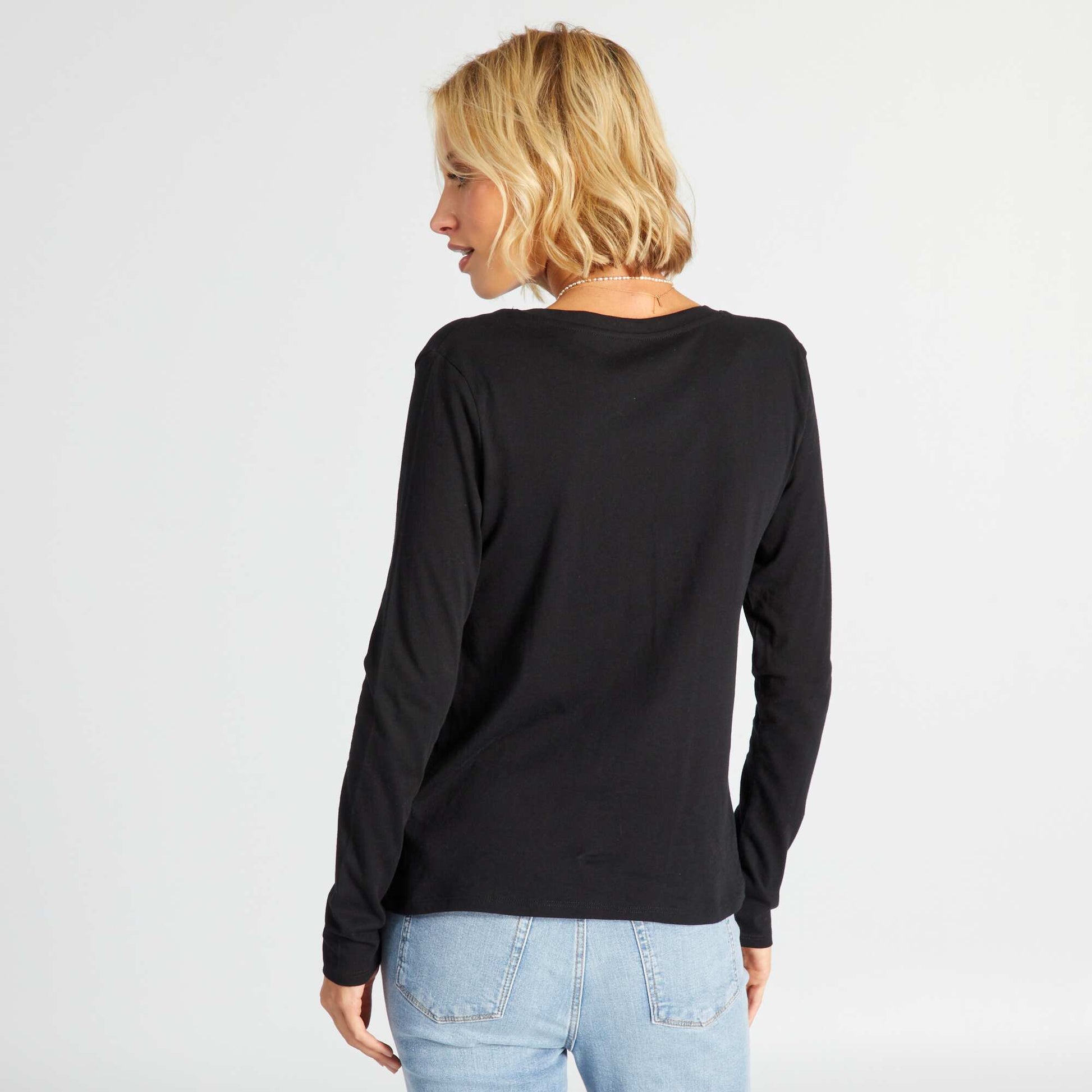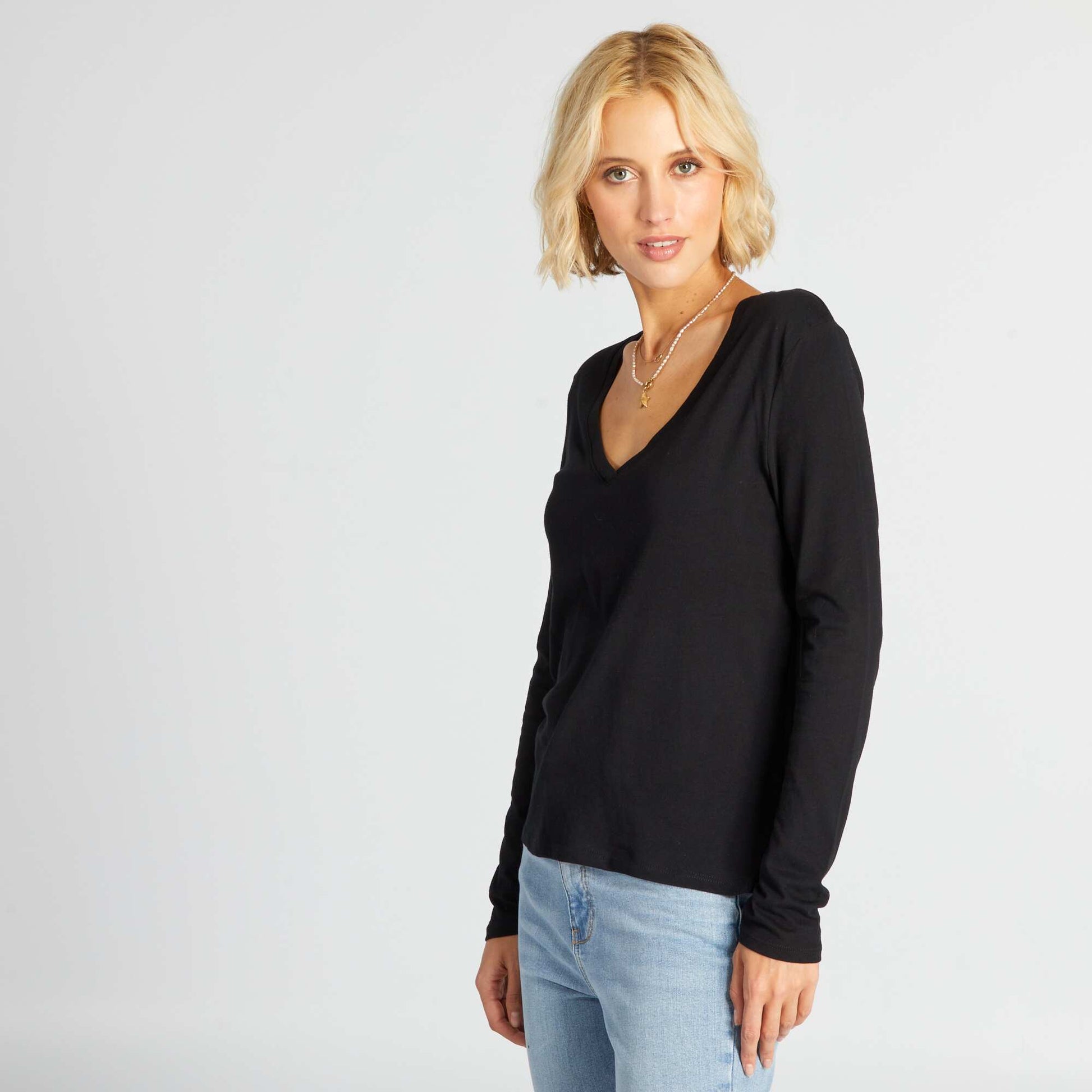 Camiseta con cuello de pico negro