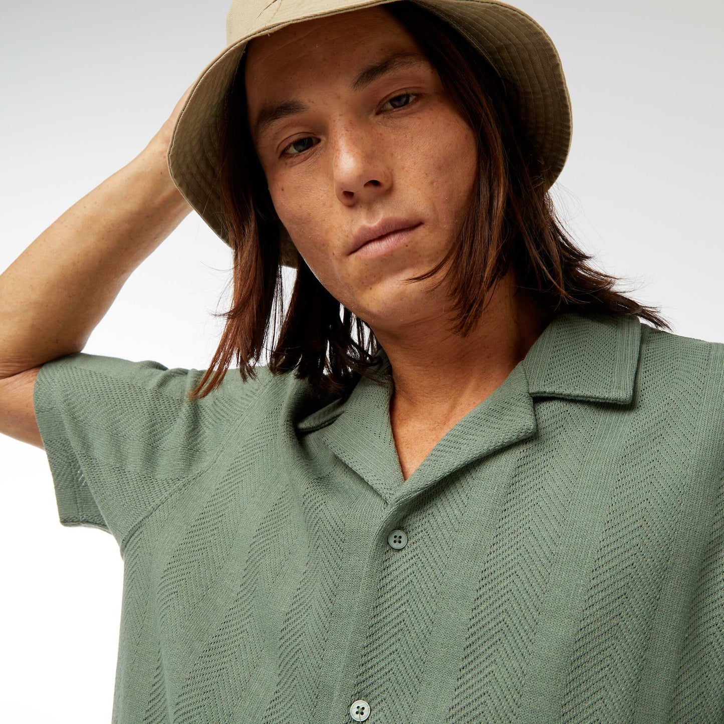 Camisa de manga corta de punto calado VERDE