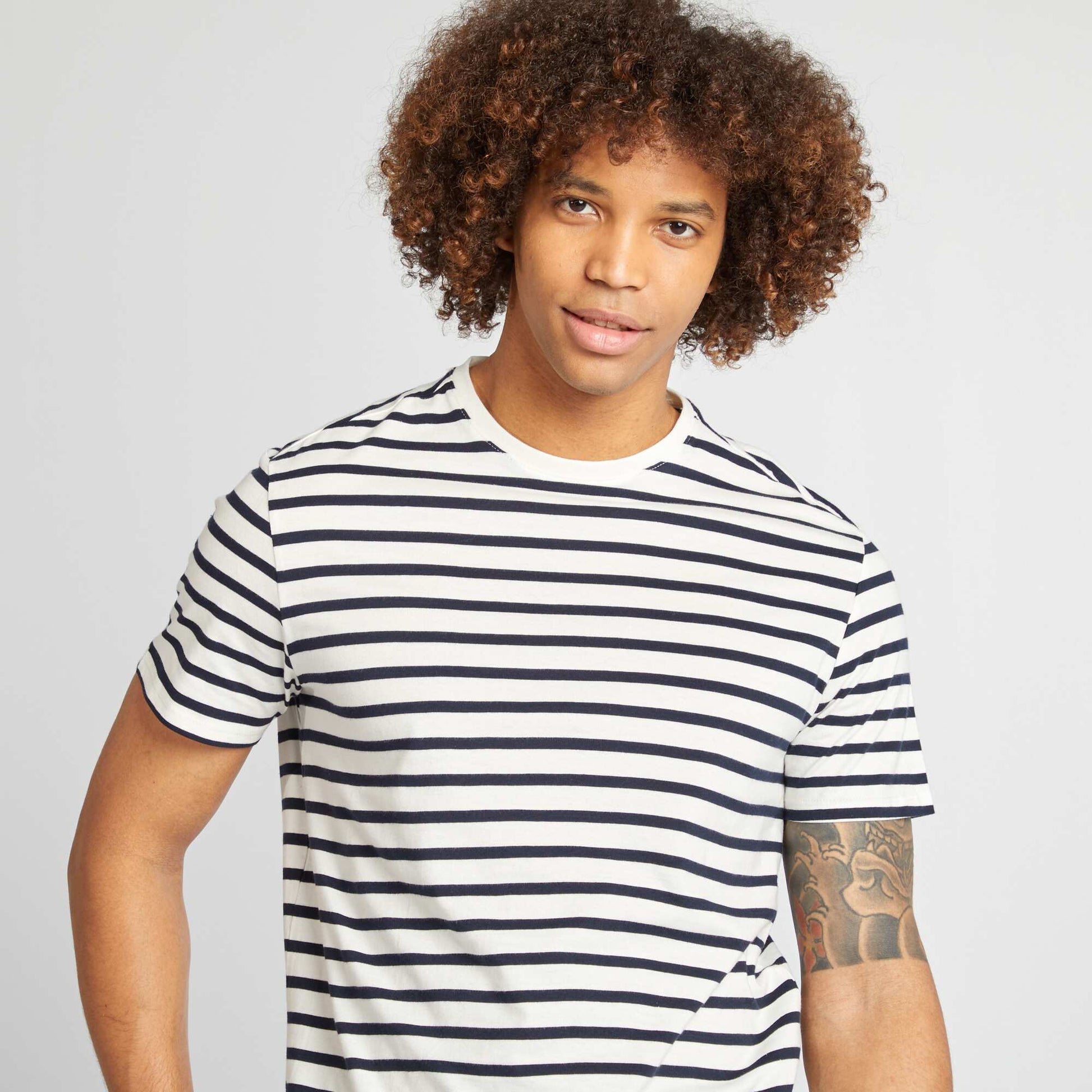 Camiseta de rayas de manga corta con cuello redondo BLANCO