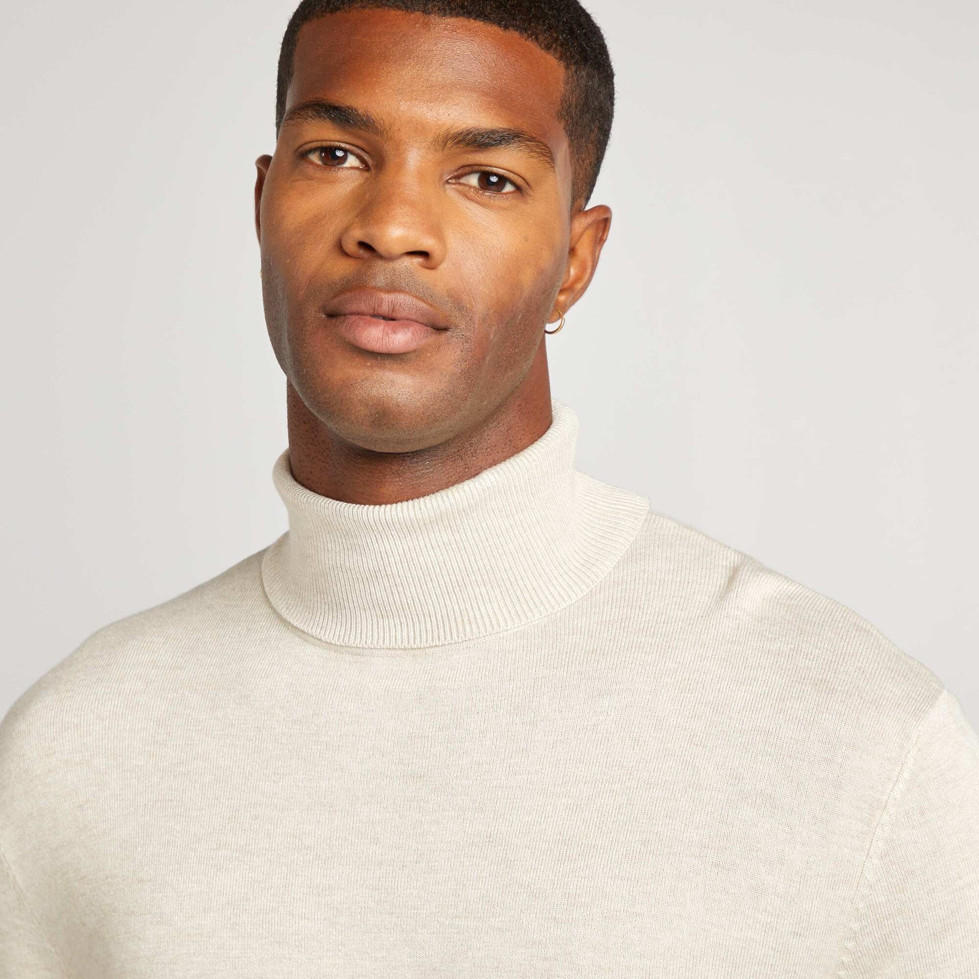 Sweater de punto fino con cuello vuelto BEIGE