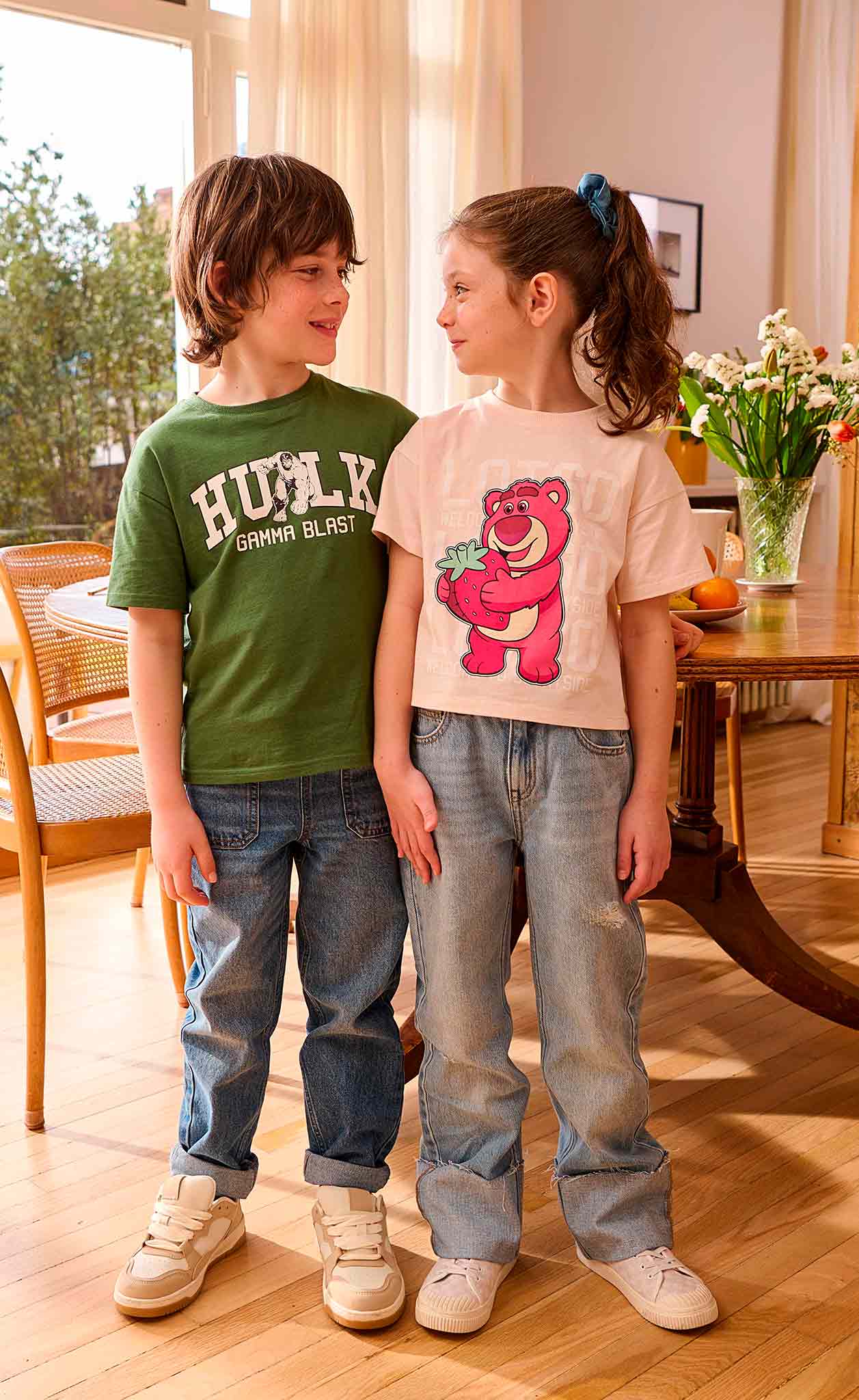 Desde Stitch y Lotso hasta Spiderman, Hulk y los Avengers, nuestras camisetas con licencia oficial traen toda la onda de sus personajes favoritos. Ideales para el día a día, son cómodas, aguantan el ritmo y dejan que los peques muestren con orgullo a sus héroes en cualquier plan.