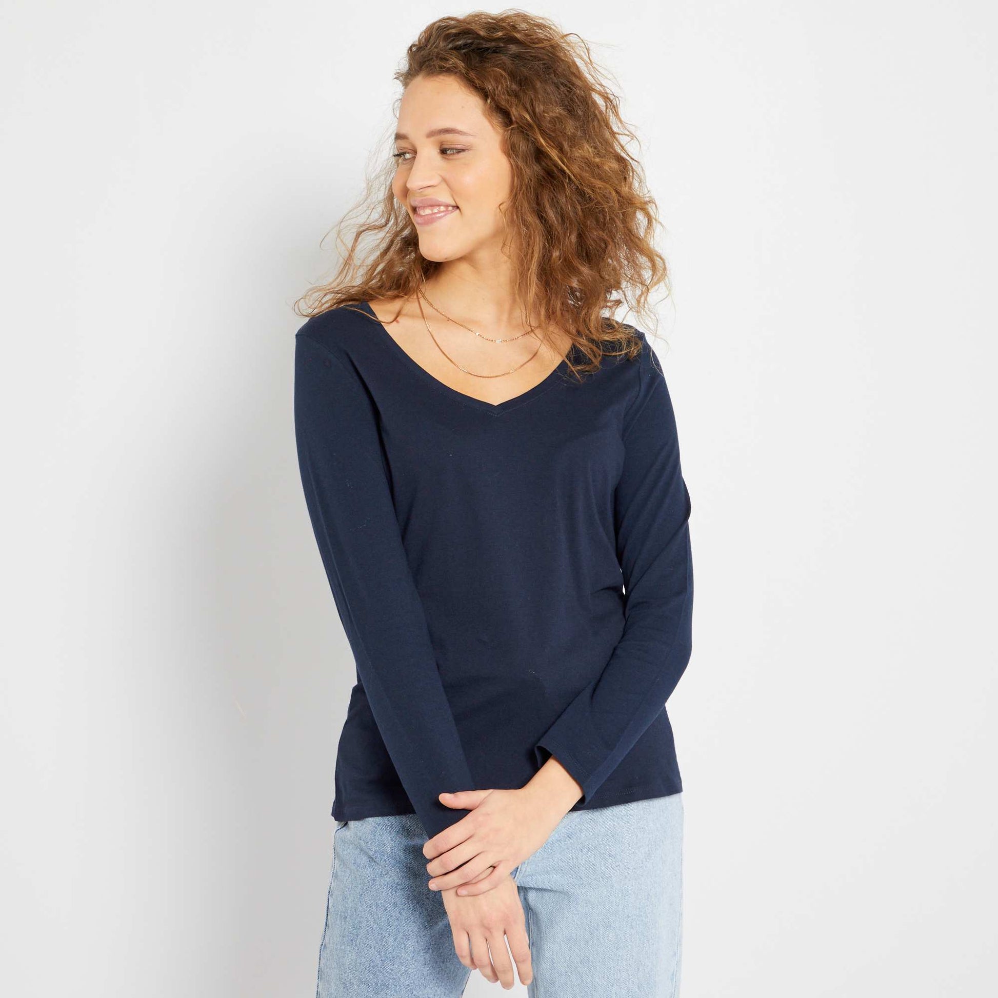 Camiseta con cuello de pico azul